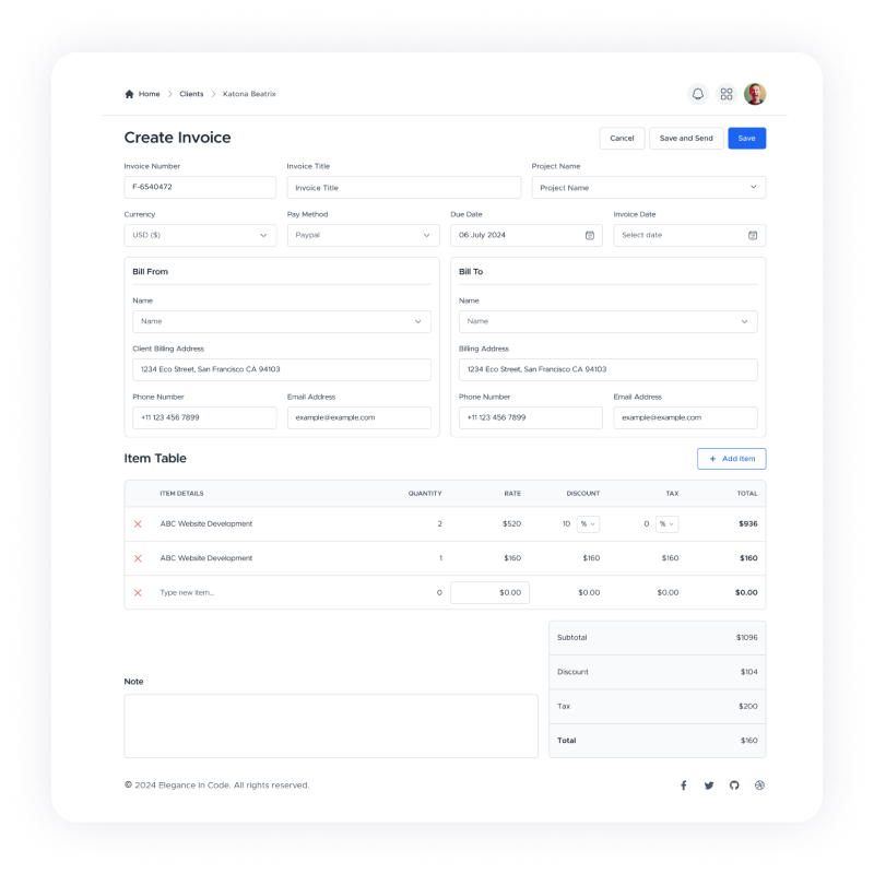 Simplify your billing process with our easy-to-use invoice generation tool. Create and send professional, branded invoices in just a few clicks. Customize invoices with your company logo, payment terms, and specific details for each client. Track the status of each invoice, from creation to payment, and manage your cash flow efficiently. No more chasing overdue payments—set up automated reminders and reduce the time spent on administrative tasks. Our platform ensures timely payments and smooth financial operations.