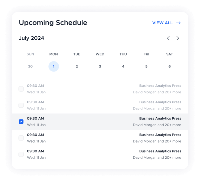 Take control of your time with our integrated schedule management features. Set up appointments, deadlines, and reminders for all your tasks in a single calendar view. Keep track of both personal and team schedules, ensuring that everyone is on the same page. With customizable notifications, you won’t miss any important dates or events. Whether you need to coordinate client meetings or manage internal deadlines, our platform helps you stay organized and on top of your responsibilities.