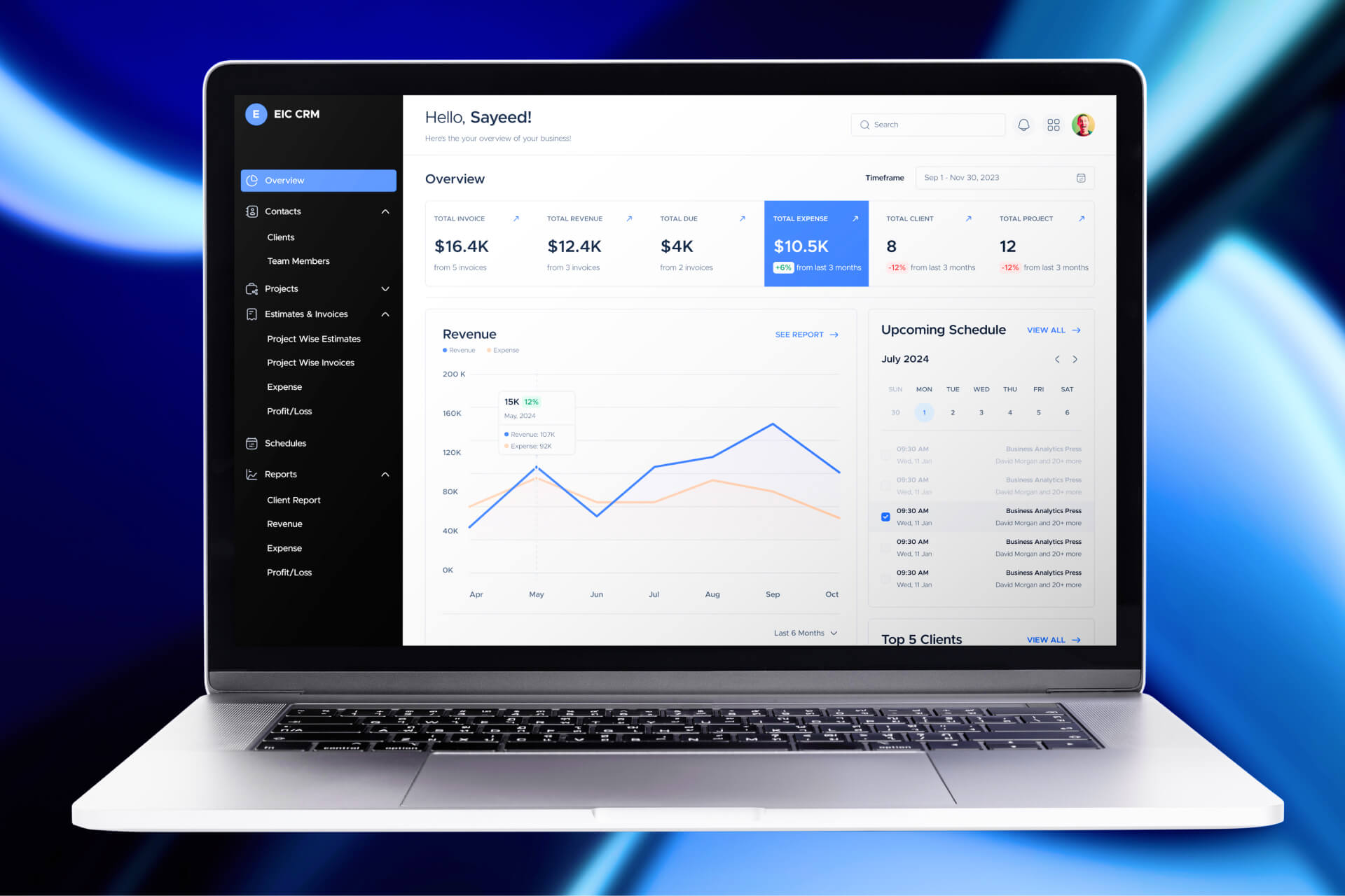 We developed an intuitive CRM SaaS application that consolidates client management, project tracking, revenue analysis, scheduling, and invoicing into one platform. With real-time insights, automation, and secure data protection, the solution streamlines operations, enhances collaboration, and supports business growth.